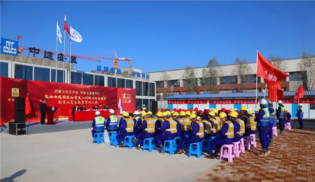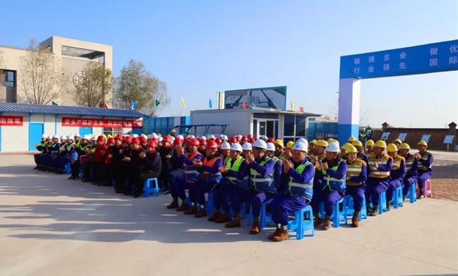 会上表彰了前期施工先进人员和班组,宣布了施工进度奖惩标准,中建集团与劳务队签订了责任状,项目经理、监理单位负责人、劳务队代表分别作了表态发言。