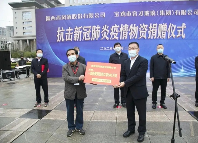 西凤集团公司向宝鸡市教育系统捐赠500万只一次性医用口罩