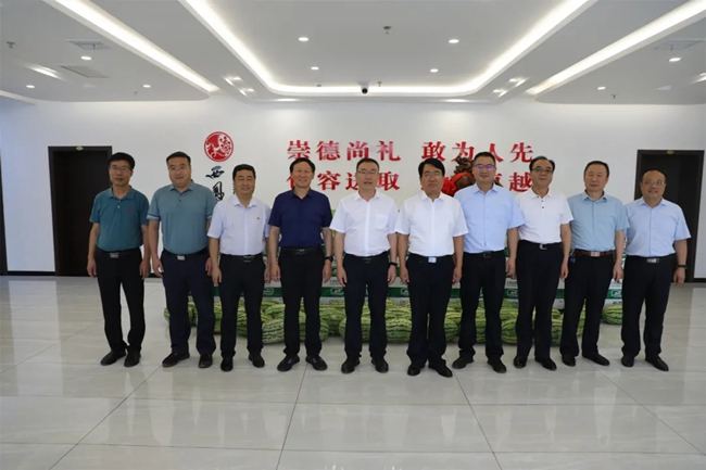 7月28日,凤翔区委书记赵永怀,区长王宏强,区人大常委会主任王明明,区政协主席鲁立,高新区党工委副书记、管委会常务副主任牟怀书,区总工会主席陈勇锋带领相关部门负责人来西凤集团公司慰问,为广大干部职工送来丝丝“清凉”。西凤集团公司党委书记、董事长、股份公司董事长张正,集团公司党委副书记、总裁杨宏亮,股份公司副董事长、总经理贾智勇,股份公司副总经理师红勤热情接待。