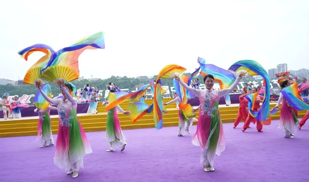 传统仪式结束后,美轮美奂的歌舞表演相继登台,期间还穿插进行了安康最富神采的经典龙舟民俗项目——龙舟横渡和抢鸭子、摸鲤鱼。