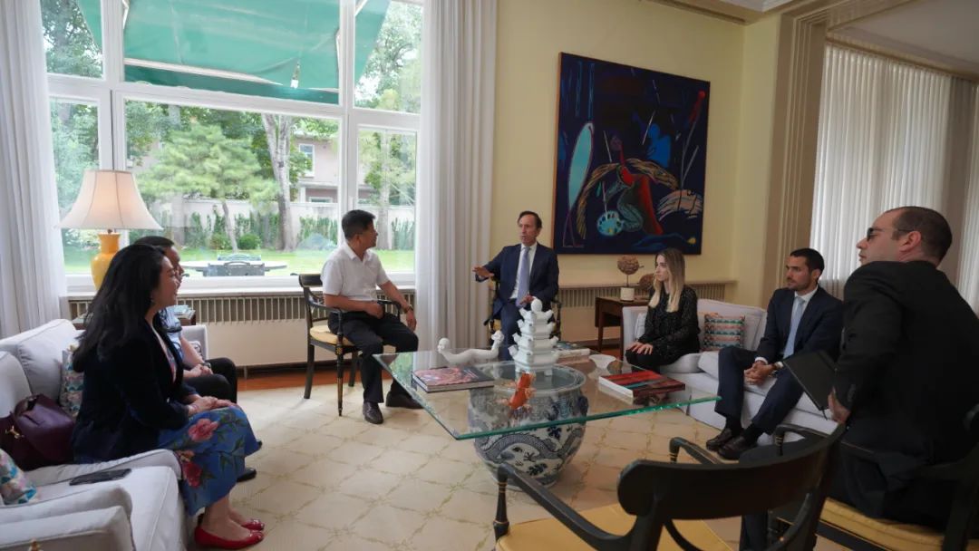 6月27-30日,由陕西西凤酒股份有限公司主办的“凤香弥久传递友谊,合志同方共话未来——红西凤走进大使馆”系列活动在京成功开展。6月28日下午,陕西西凤酒股份有限公司副总经理高洪涛一行抵达葡萄牙驻华大使官邸,与葡萄牙驻华大使杜傲杰进行了深入的沟通交流,积极寻找文化共通点,加速推动中国白酒国际化。高洪涛与在场嘉宾分享西凤酒所蕴含的岁月沉淀、醇香典雅的悠久文化,分享西凤品牌发展过程中的动人故事。陕西西凤酒股份有限公司品牌管理部部长姜承辉及随行人员参加了此次活动。