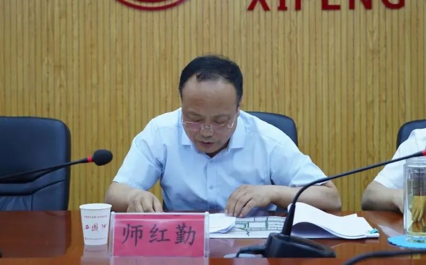 西凤股份公司副总经理师红勤宣读《关于成立10万吨基酒项目工作推进小组的通知》