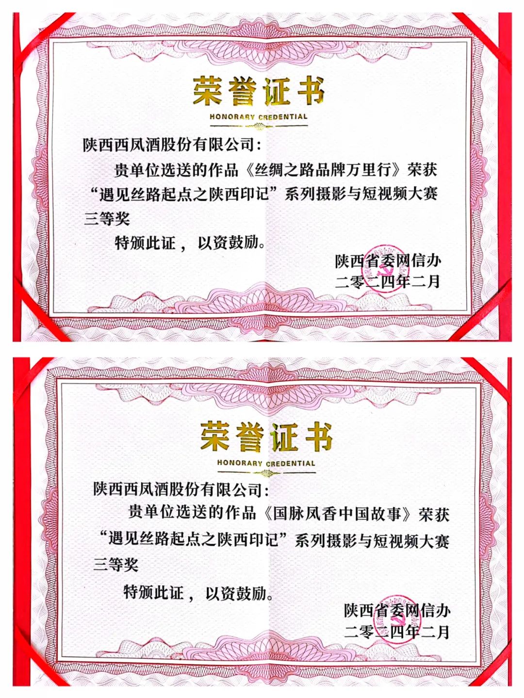 西凤股份公司荣获“遇见丝路起点之陕西印记”系列摄影与短视频大赛两项大奖