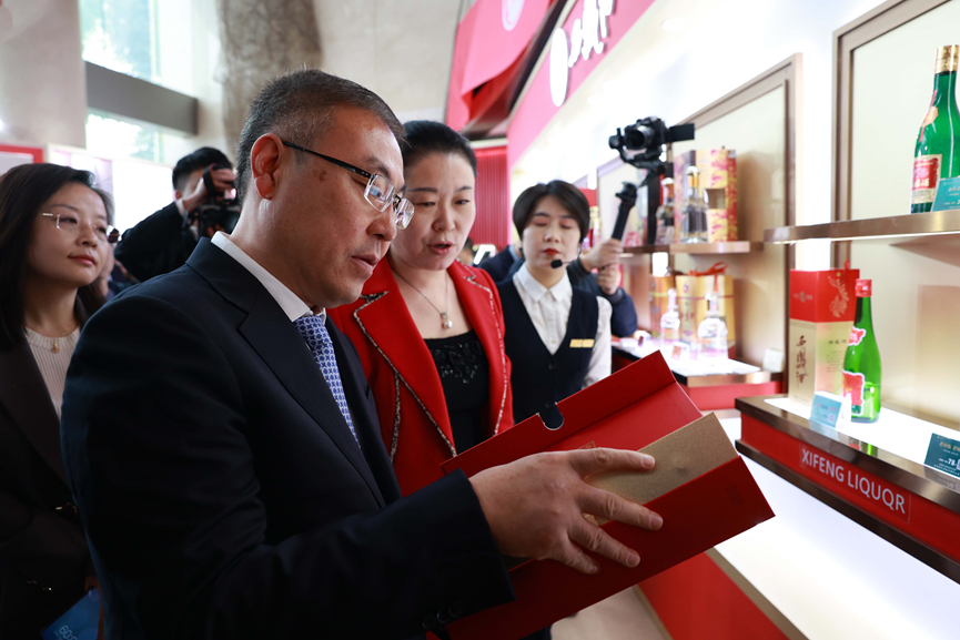 西凤股份公司总经理张周虎参观产品展台