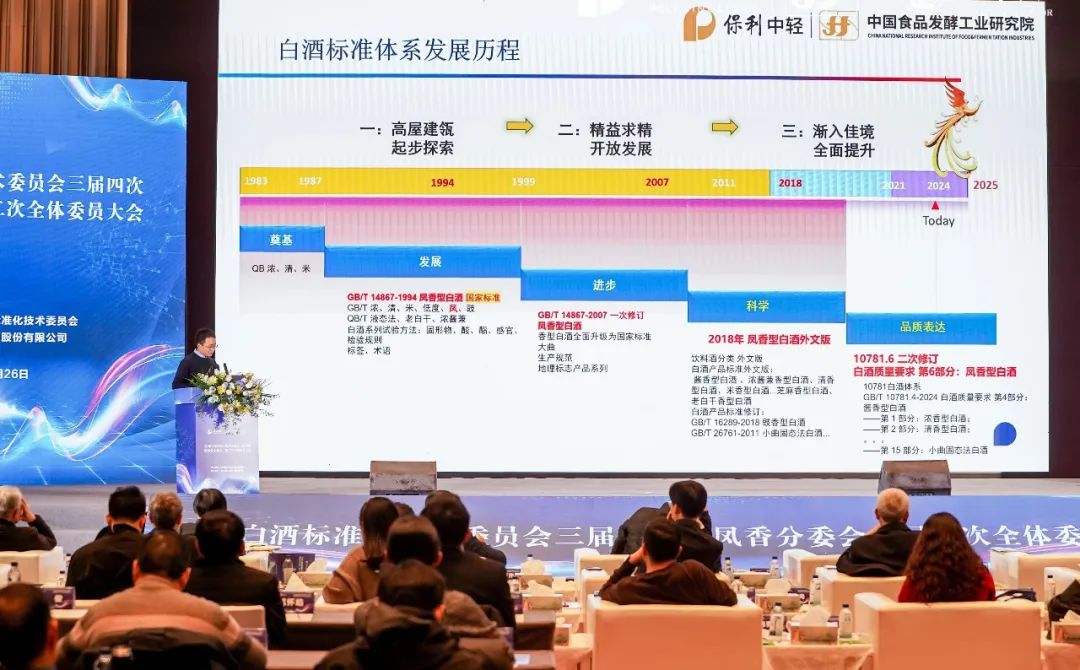 会上,宋全厚通报了2024年度全国白酒标准化技术委员会委员调整情况,西凤股份公司总工程师冯雅芳等11人当选委员。会议还审定通过了《白酒质量要求第15部分:小曲固态法白酒》国家标准。