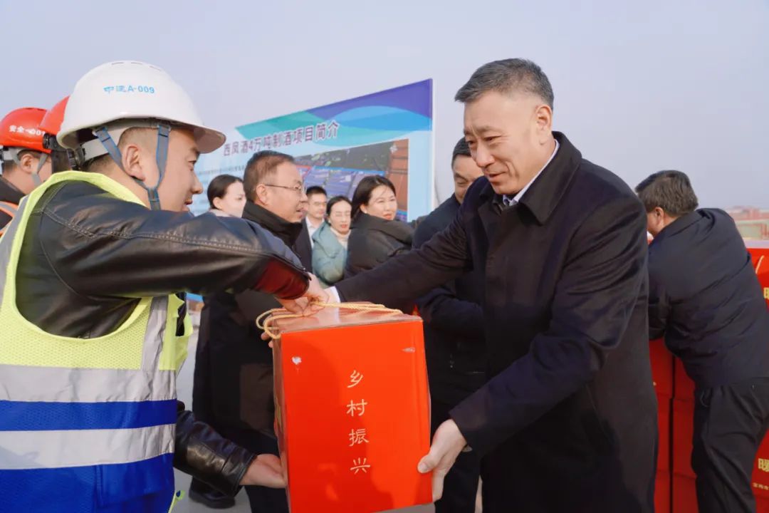 项目现场,景耀平与建设者亲切交谈,详细了解他们的工作、生活状况,感谢他们为西凤发展以及宝鸡经济建设做出的贡献,并将慰问品送到大家手中,为他们送去新春的祝福和组织的温暖。