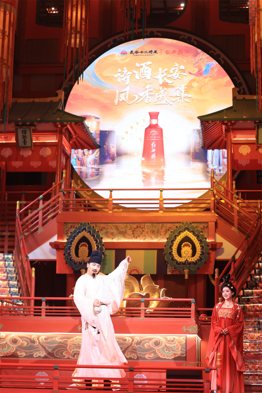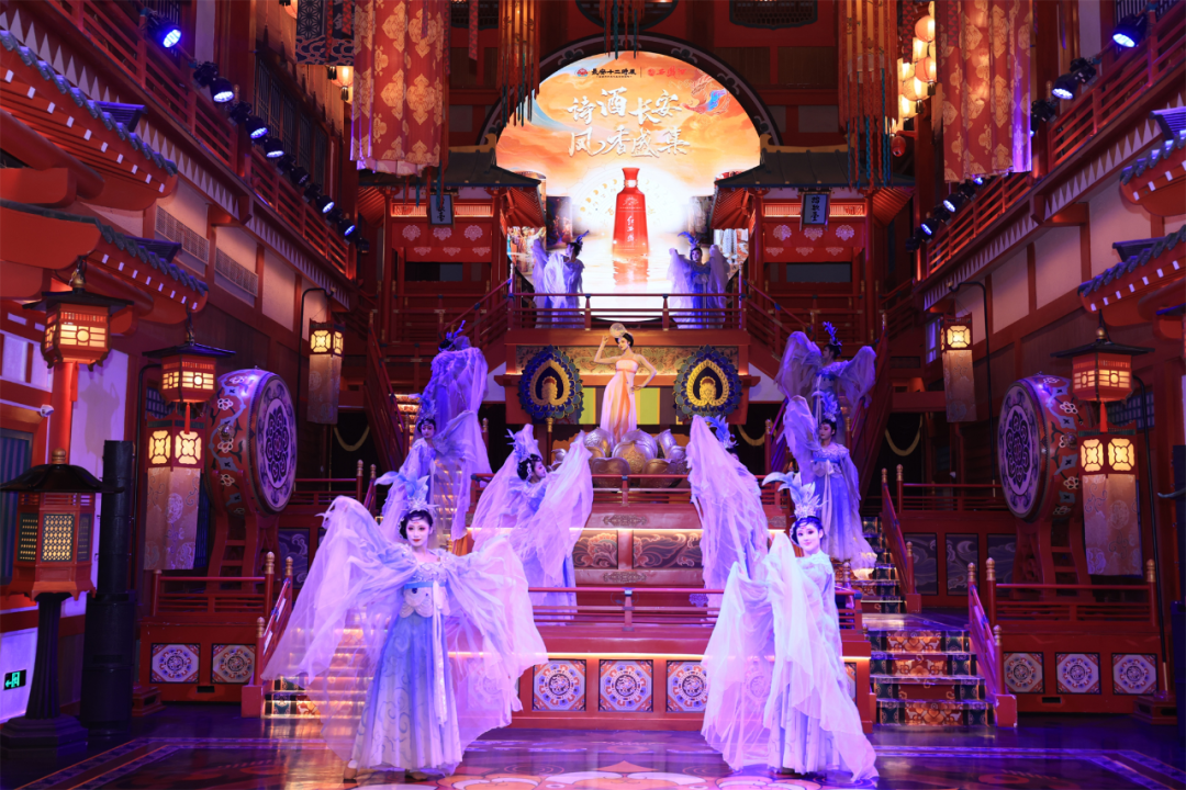 本次活动以长安十二时辰街区为舞台,在“盛唐坊市”的灯火里构建了一场诗与酒、古都长安与民族品牌、历史传承与时代创新的古今对话。活动现场,现代光影技术与唐风场景布置的巧妙结合,完美复刻出“九天阊阖开宫殿,万国衣冠拜冕旒”的大唐盛景。伴着《将进酒》《霓裳羽衣舞》等演出,以及投壶、套圈、射箭、品酒、对诗游戏互动和书法书签、漂漆书签、吹糖人非遗体验,“诗酒长安 凤香盛集”活动将千年凤香醇厚与千年盛唐气象交相辉映。这不仅是一次向中华诗酒文明的深情致敬,也是一次民族品牌彰显文化自信的新潮注解。