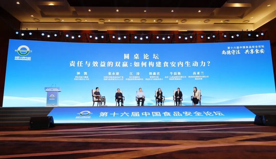 第十六届中国食品安全论坛主题为“尚德守法、共享食安”,来自政府相关部门人员、行业专家、科研学者及食品企业等各界代表围绕食品安全责任与风险防控、产品创新与市场趋势、标杆案例与典型经验、“制止餐饮浪费”行业联动与科普宣传等议题开展交流讨论。