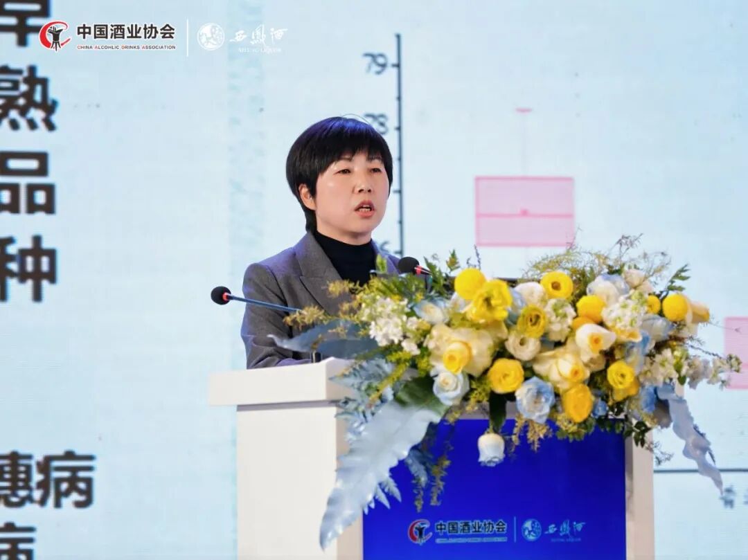 冯雅芳作了《西凤酒酿造原料体系探究与实践》的主旨报告,系统阐述了西凤酒在原料体系建设与产业未来发展方面的战略思考。她指出,西凤酒立足中华农耕文明发祥地,构建了以“一主”“五辅”为核心的原料研究体系,创造性地将窖泥、水源及非遗酒海纳入研究范畴,通过科学方法实现传统酿造智慧的系统解码。近年来,通过产学研深度协同,西凤酒在专用原料培育、微生物群落解析及生产工艺优化等领域取得系统性突破,形成了覆盖“育、种、收、储、用”的全链条标准化品质管控体系。面向“十五五”新发展阶段,她表示,西凤酒将以构建“产储销、文旅、科研”于一体的绿色生态原粮产业园为抓手,推动产业链价值整合升级,通过建立原料品质一体化管控体系,探索白酒产业高质量发展新路径,为行业可持续发展提供西凤思考与实践。